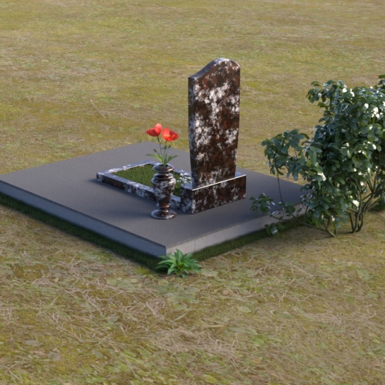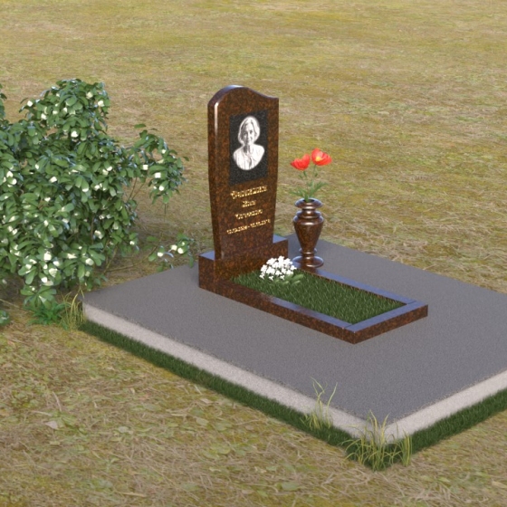 Форма стелы, тяготеющая к классической прямоугольной, предоставляет широкие возможности для персонализации. Портрет усопшего, расположенный в верхней части, будет выгодно подчеркнут лаконичной формой камня. Золотистое начертание имени и дат жизни, выполненное с особым вниманием к деталям, отчетливо выделяется на фоне полированного гранита, создавая четкий и легко читаемый текст. Дополнительно можно разместить эпитафию или памятные слова, которые отразят личность и жизненный путь ушедшего человека. Маленькая гранитная ваза, выполненная в едином стиле с мемориальной композицией, станет достойным обрамлением для живых цветов, привносящих нотку жизни и надежды.