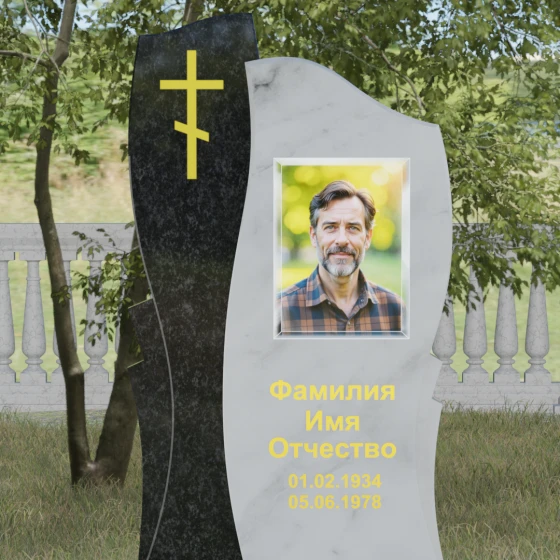 Кому подойдет: Данная модель является универсальным и при этом глубоко индивидуальным решением. Благодаря возможности комбинирования камней, она идеально подходит как для оформления мужского захоронения (в строгих темных тонах с четкими линиями), так и для женского (при выборе более светлых оттенков камня и акценте на плавную волну стелы). Наличие православного креста делает её приоритетным выбором для верующих людей, подчеркивая их принадлежность к христианской традиции и надежду на вечную жизнь. Этот мемориальный комплекс станет достойным воплощением вашей любви и бесконечного уважения к ушедшему родителю, супругу или близкому другу, сохраняя их светлый образ для будущих поколений.