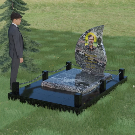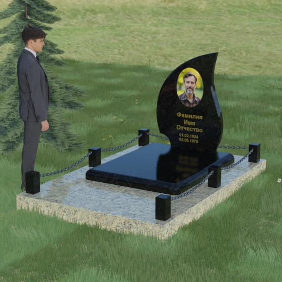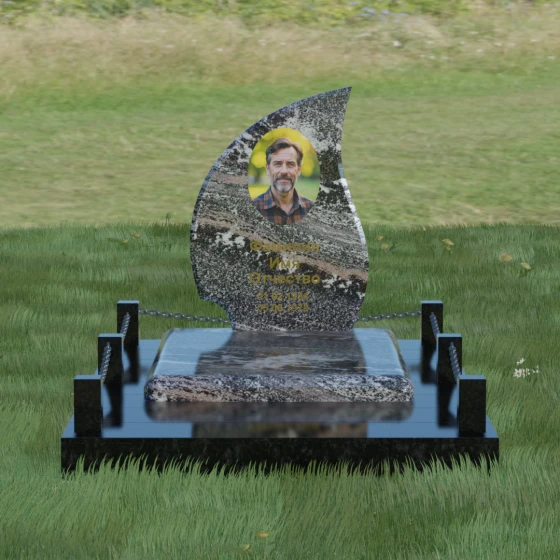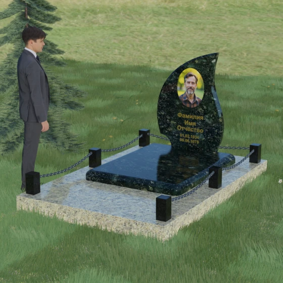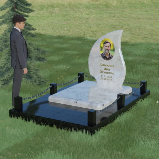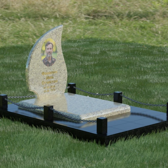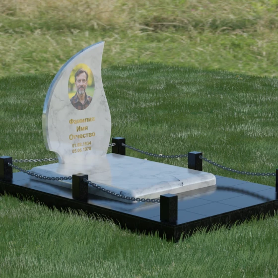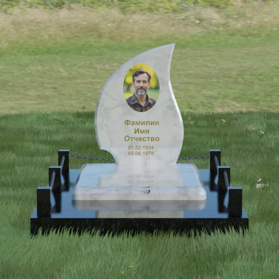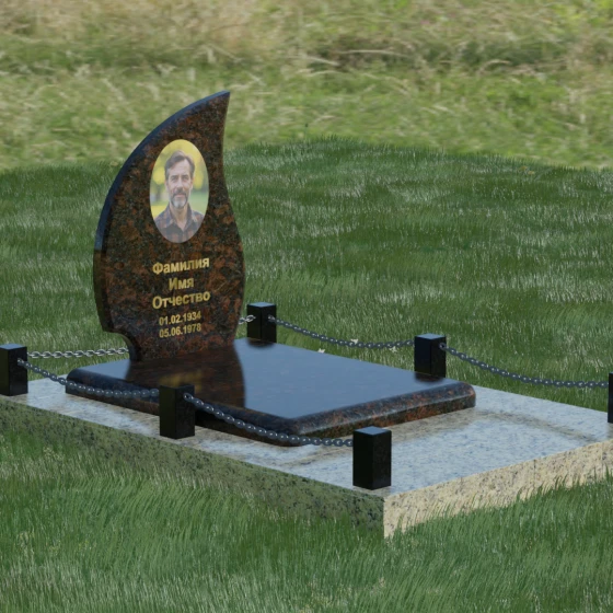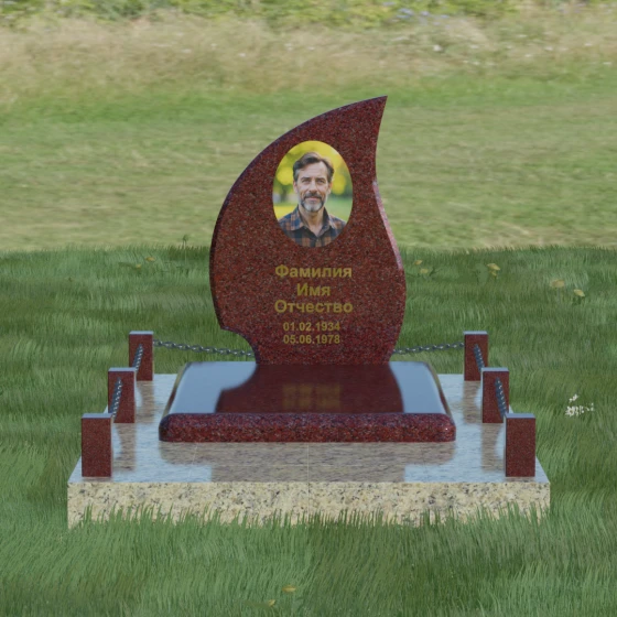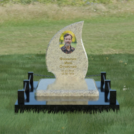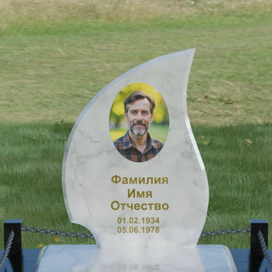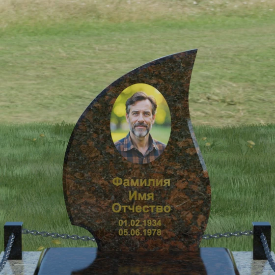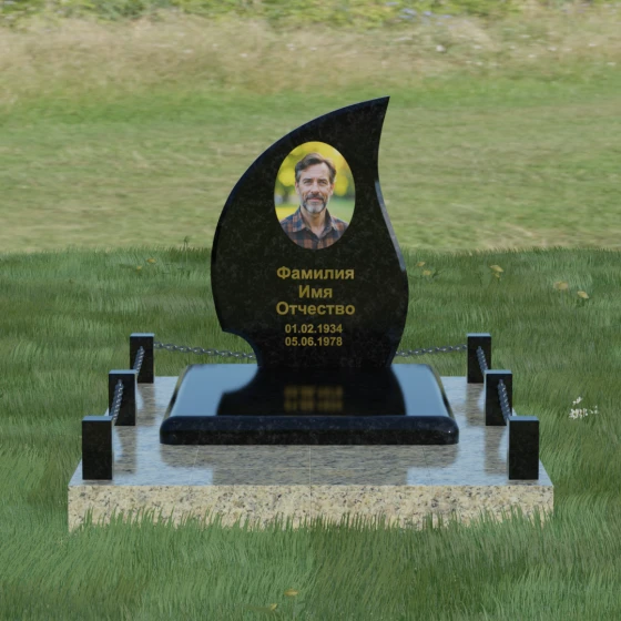 Кому подойдет: Данная модель является универсальным решением. Благодаря плавным изгибам и форме «пламени», она часто выбирается для оформления женских захоронений, олицетворяя нежность и скорбь. В то же время, строгость линий и массивность основания позволяют устанавливать этот памятник на могилах мужчин, подчеркивая их силу духа и статус. Выбор одного из 8 видов камня поможет дополнительно индивидуализировать мемориал: например, темный Габбро подчеркнет строгость, а светлый Мансуровский гранит или мрамор Тассо — чистоту и светлую память об ушедшем человеке.