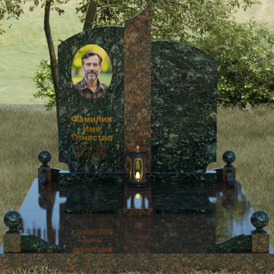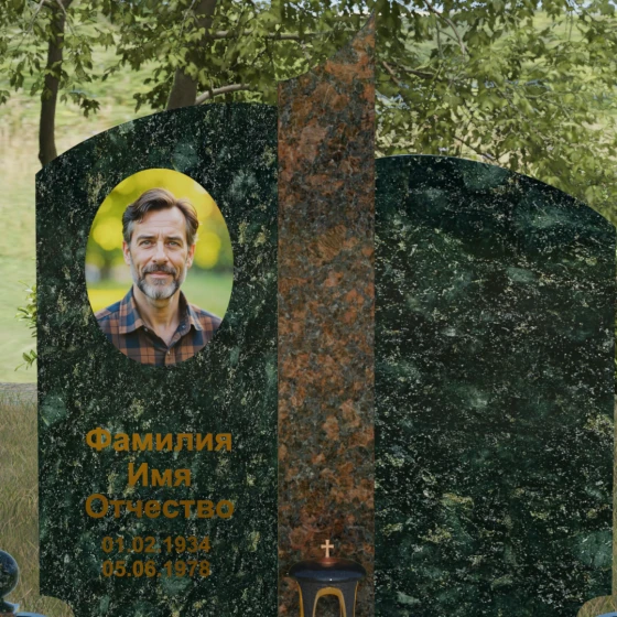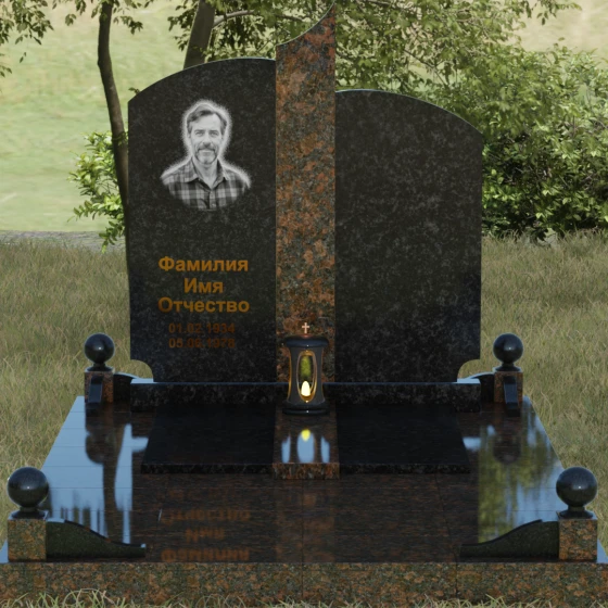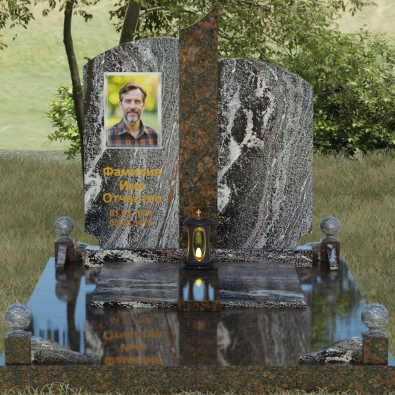 На широкой левой части композиции идеально располагается гравированный портрет или фотокерамическое панно. Темный фон основного камня обеспечивает максимальную контрастность для золоченой надписи, делая каждое слово четким и легко читаемым. Мы понимаем, как важно передать теплоту ваших чувств, поэтому наши мастера помогут подобрать шрифт и размер элементов оформления так, чтобы они гармонировали с величественной геометрией камня. Пусть этот мемориал станет достойным символом вашей любви и преданности, сохраняя историю жизни для будущих поколений.