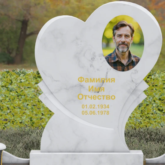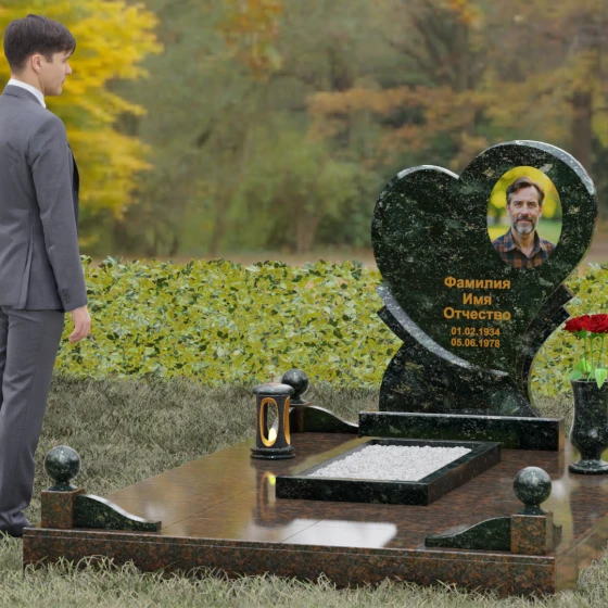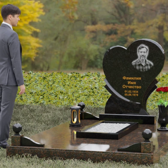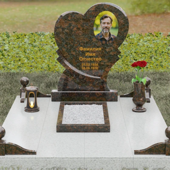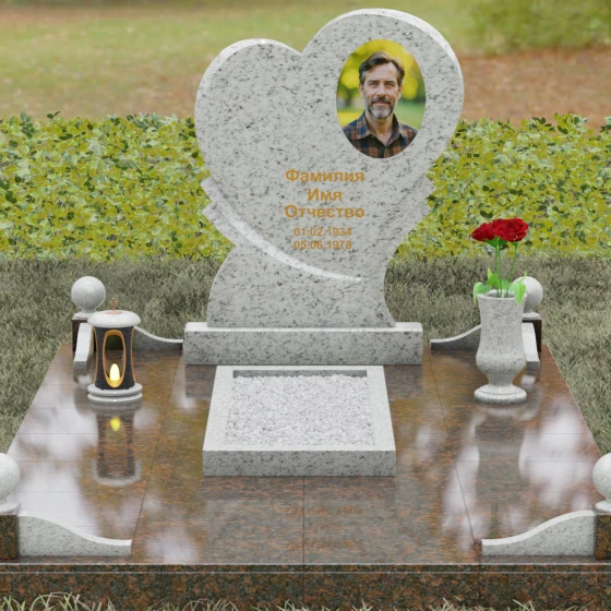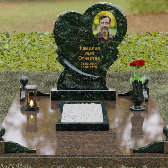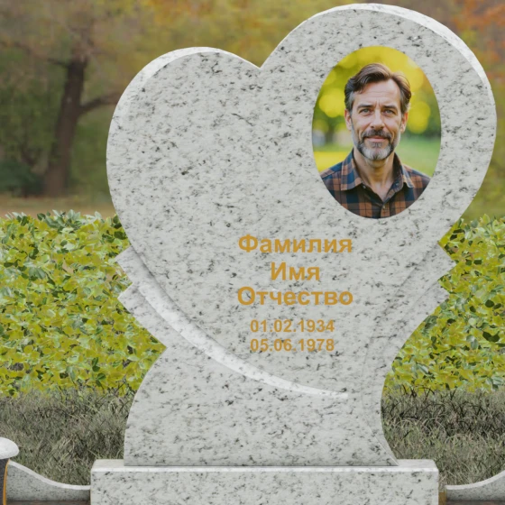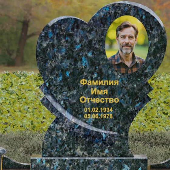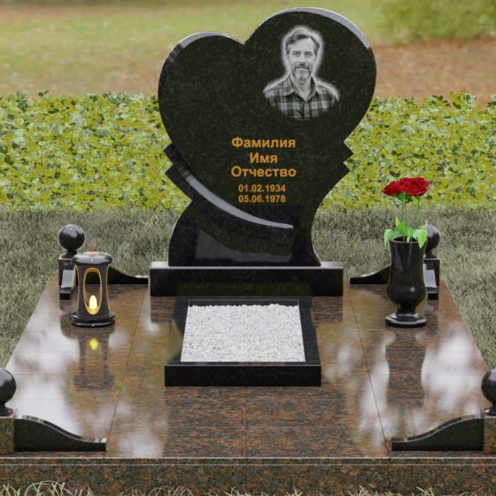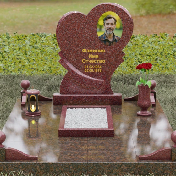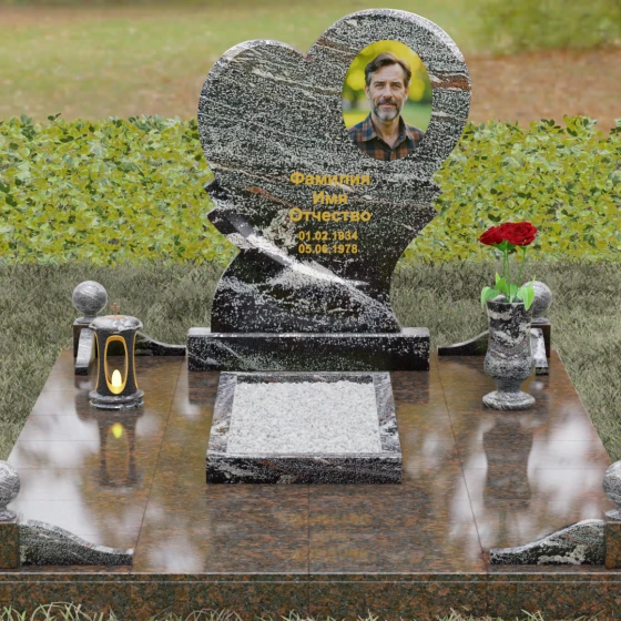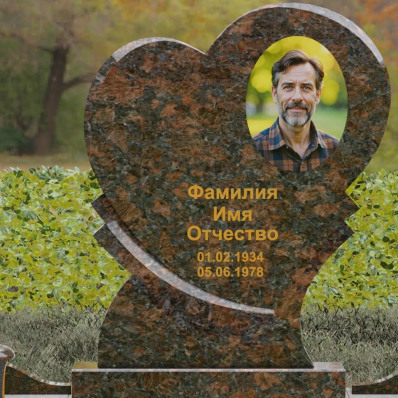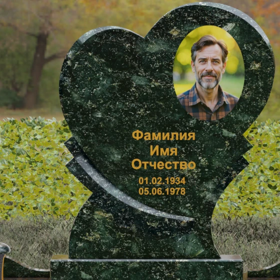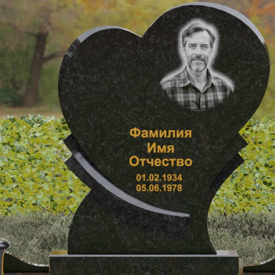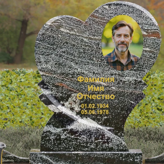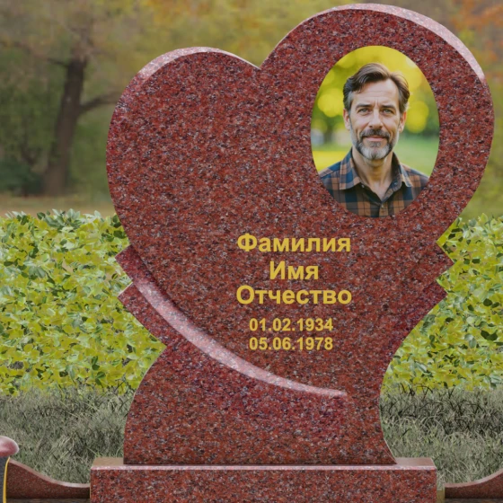 Широкая поверхность сердца идеально подходит для расположения портрета любого формата — от классической гравировки до фотокерамики или медальона в нише. Художественное оформление, нанесенное на темный полированный гранит, выглядит контрастно и четко, позволяя передать каждую черту лица. Текст эпитафии и даты жизни, нанесенные сусальным золотом или методом глубокой вырубки, станут достойным завершением образа.