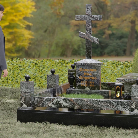 Память о близком человеке — это не только тихая скорбь, но и стремление запечатлеть образ ушедшего в формах, неподвластных времени. Создание мемориала требует особого подхода, где каждый элемент — от основания до вершины — несет в себе глубокий смысл и эстетическую завершенность. Данный мемориальный комплекс представляет собой не просто место поклонения, а полноценное архитектурное высказывание, в котором строгость линий гармонично сочетается с торжественностью православной символики. Это подношение вечности, воплощенное в благородном камне, призванное хранить тепло воспоминаний на протяжении многих десятилетий.
