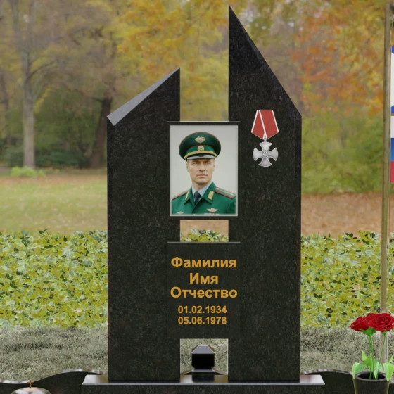 Увековечивание памяти — это не просто дань традиции, а создание монументального символа, способного пронести сквозь десятилетия историю личности, её подвигов и характера. Данная мемориальная композиция разработана как архитектурное воплощение стойкости и мужества, где каждая линия и грань камня подчеркивают значимость жизненного пути. Массивность конструкции и безупречная геометрия создают атмосферу торжественного покоя, превращая место захоронения в величественный мемориал, вызывающий глубокое уважение у каждого, кто приходит почтить память ушедшего.