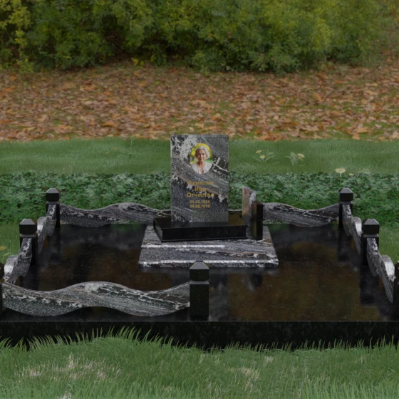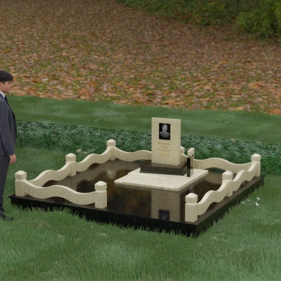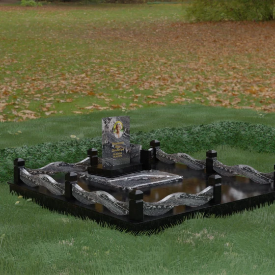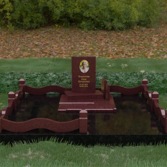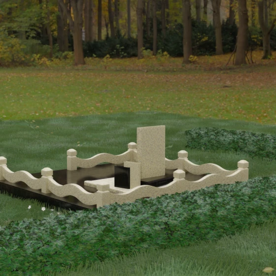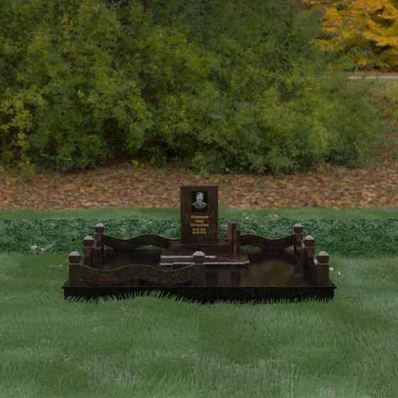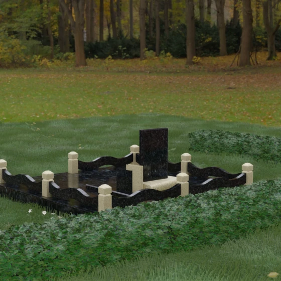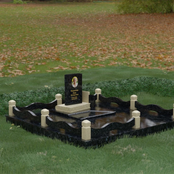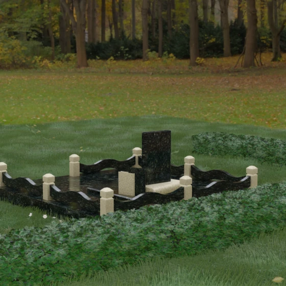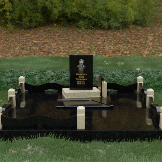 Кому подойдет: Данная модель является универсальным решением для тех, кто ищет комплексный подход к оформлению захоронения. Строгие линии центрального блока позволяют установить его как мужчине, так и женщине, подчеркивая статус и уважение к личности. Благодаря наличию полноразмерного фундамента и ограждения, этот вариант идеален для семей, которые хотят один раз и навсегда благоустроить участок, обеспечив ему достойный вид без необходимости регулярного сложного обслуживания. Это выбор в пользу вечности, массивности и архитектурного совершенства.