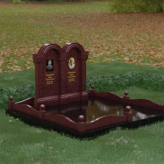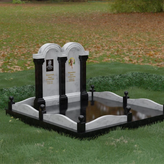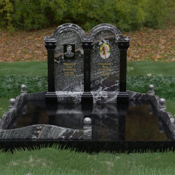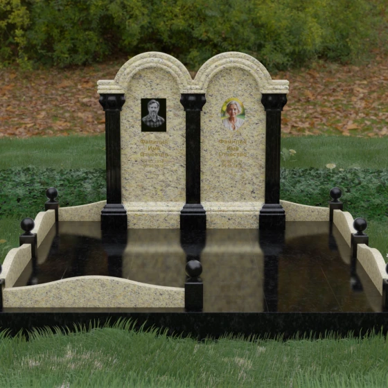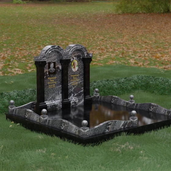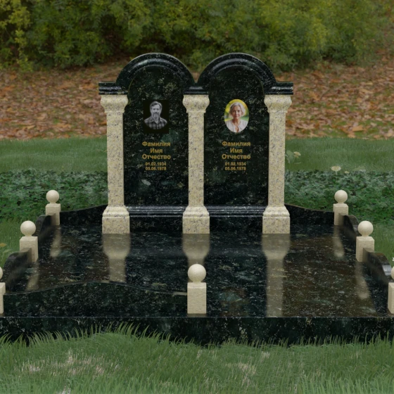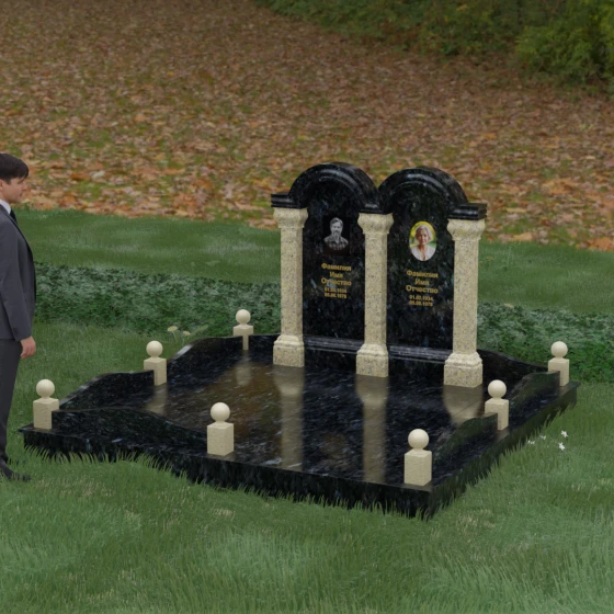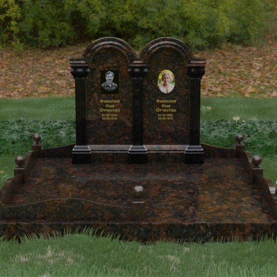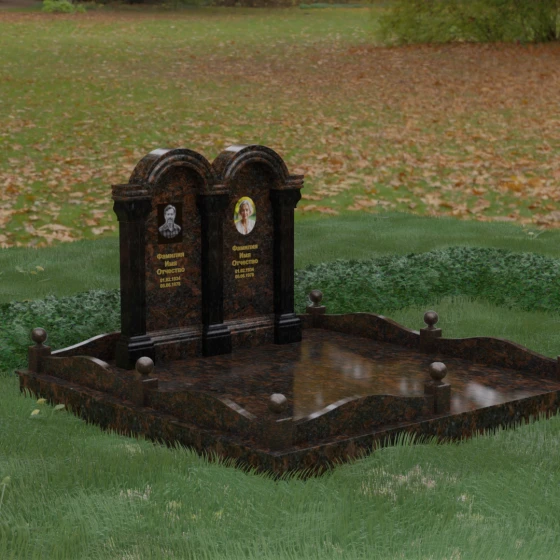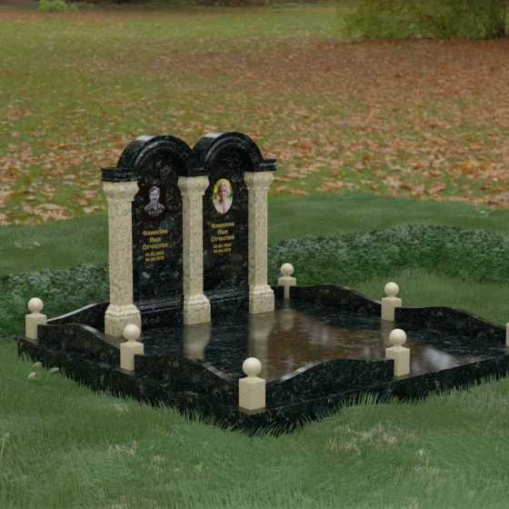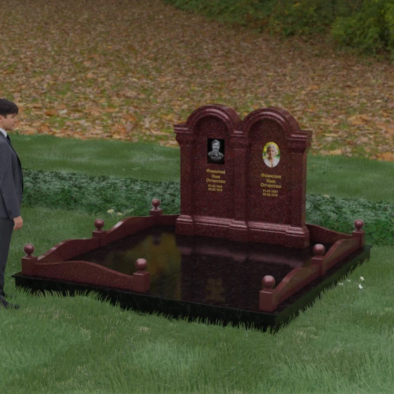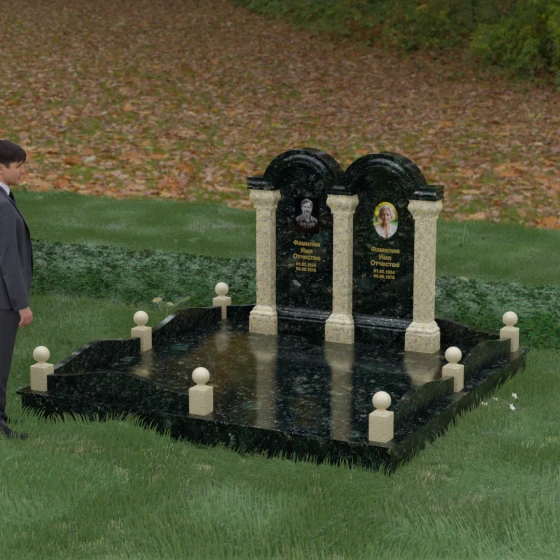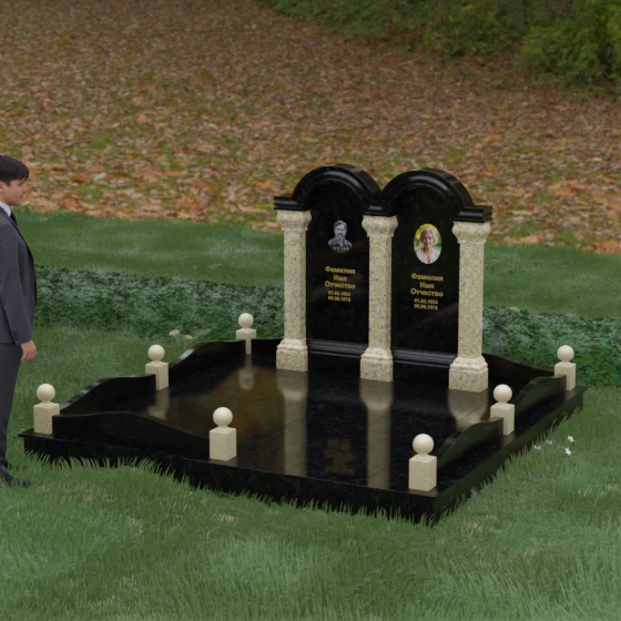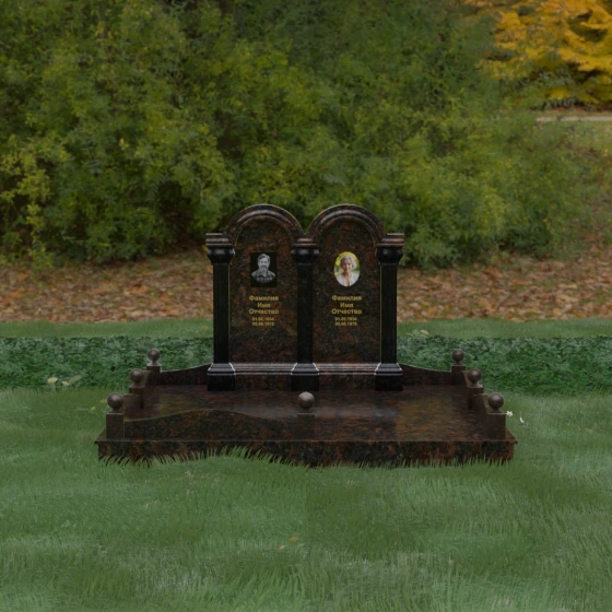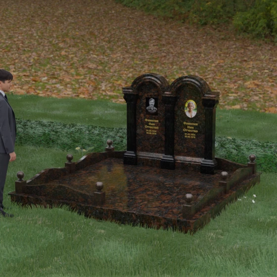 Кому подойдет: Данный гранитный монумент спроектирован как парное (семейное) захоронение, идеально подходящее для супругов, родителей или близких родственников. Его архитектурный стиль — "европейский модерн" с элементами неоклассики — оценят те, кто ищет баланс между традицией и современными эстетическими решениями. Массивность конструкции и наличие закрытого цоколя делают эту модель оптимальным выбором для создания родового мемориала, который станет символом почитания семейных уз и вечной памяти для многих поколений потомков.