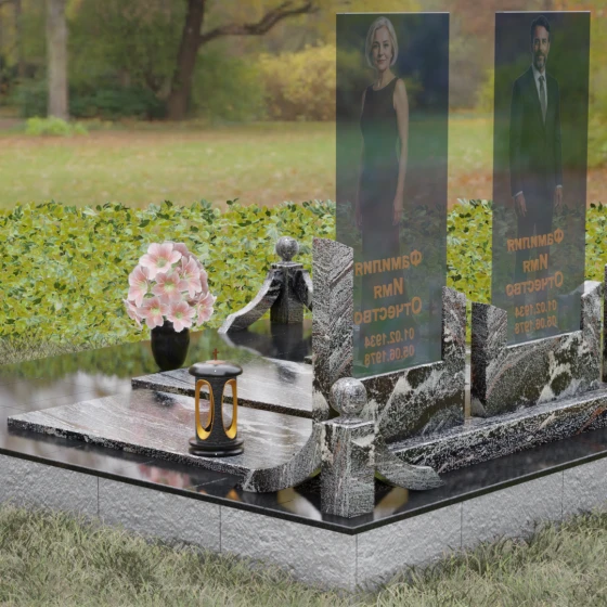 • Массивный гранитный цоколь: Мощное многоуровневое основание, обеспечивающее надежную установку и защищающее конструкцию от проседания почвы.