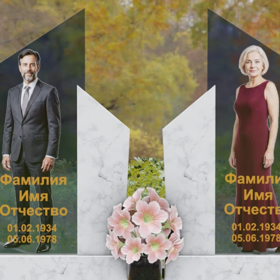 Для этой формы идеально подходят ростовые портреты или крупные изображения на стекле, которые, благодаря большой площади вертикальных элементов, выглядят масштабно и реалистично. Золотая гравировка текста на темном фоне или глубокая вырубка букв на светлом камне станут достойным финальным штрихом. Мы понимаем горечь вашей утраты и стремимся воплотить в камне ту безмолвную любовь и уважение, которые навсегда останутся в ваших сердцах.