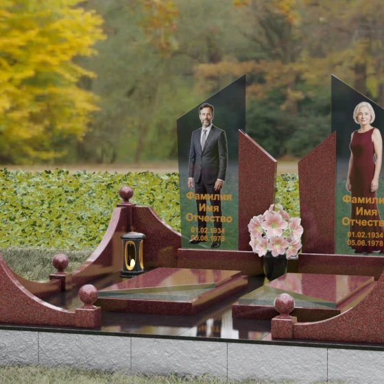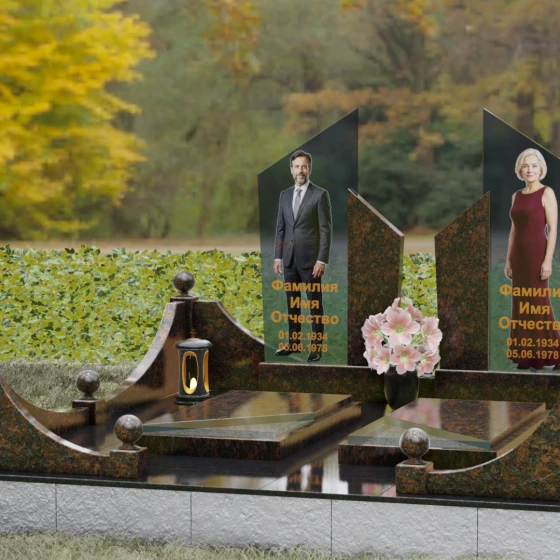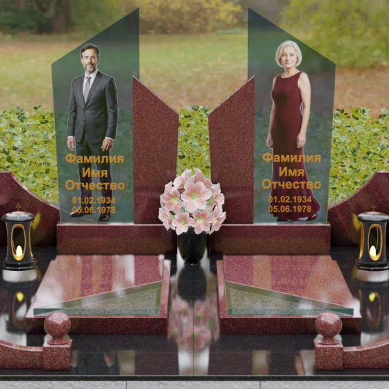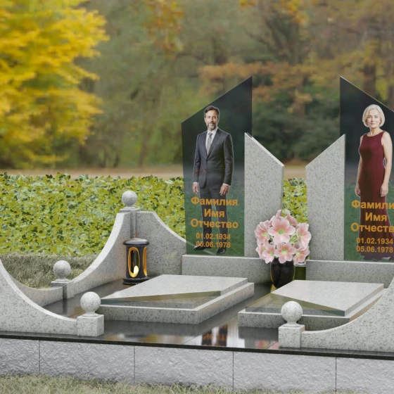 Этот мемориальный ансамбль представляет собой совершенное воплощение парного захоронения, где архитектурная мысль встречается с глубоким символизмом. Модель Артикул 249 — это не просто памятный знак, а настоящая архитектурная композиция, выполненная в лучших традициях современного европейского дизайна. В центре концепции лежат два величественных вертикальных обелиска, чьи вершины устремлены ввысь под острым углом, символизируя духовное вознесение и вечную память, не знающую преград. Гранитный монумент спроектирован как зеркальное отражение двух судеб, объединенных общим пространством, где симметрия подчеркивает гармонию и неразрывную связь душ.