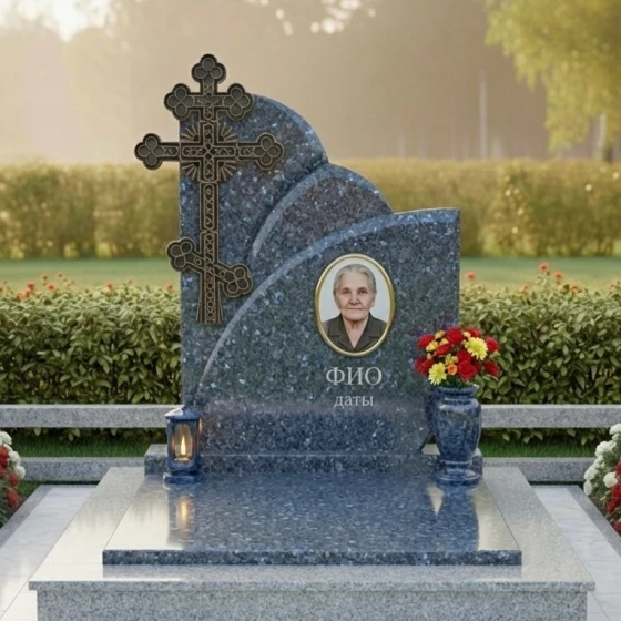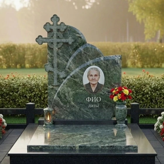 Оформление: Уникальная форма вертикальной плиты идеально подходит для гравировки портрета, выполненного методом лазерной гравировки или ручной работы, что позволит передать все черты лица с максимальной точностью. Размещение портрета по центру, под легкими волнами верхнего края, создает ощущение его защищенности и значимости. ФИО и даты жизни будут гармонично смотреться под портретом, выполненные элегантным шрифтом, который подчеркнет благородство камня. Возможно добавление эпитафии или символических изображений, которые будут ненавязчиво дополнять общую композицию, сохраняя ее лаконичность и достоинство.