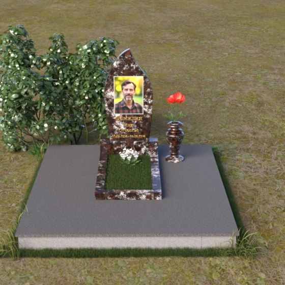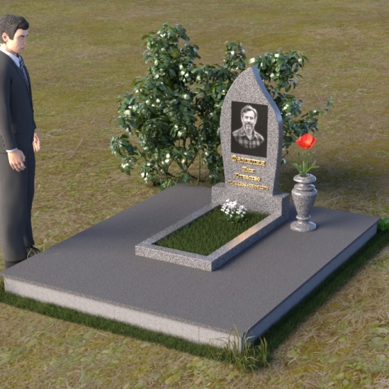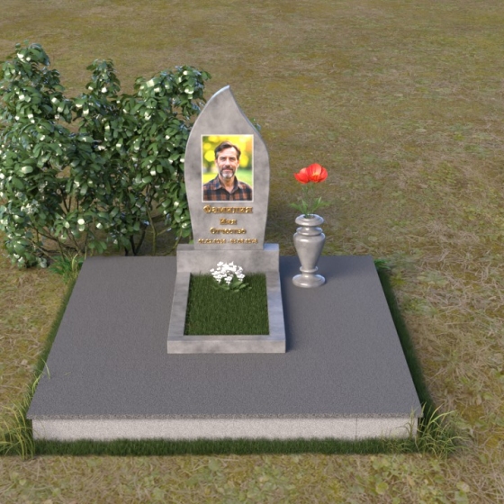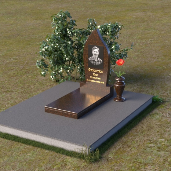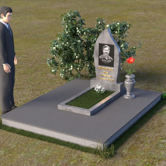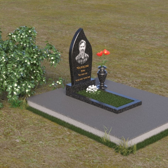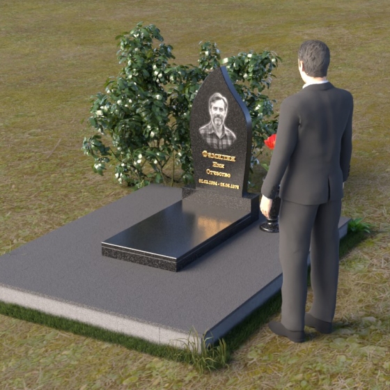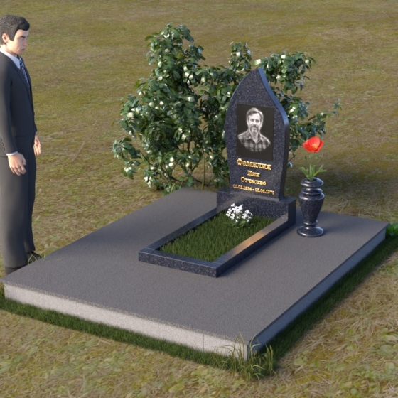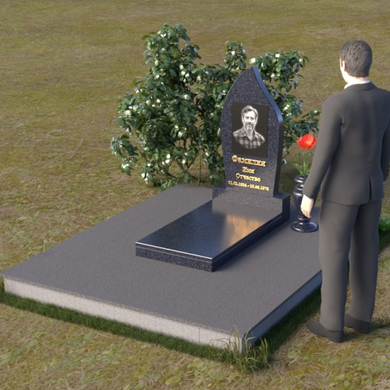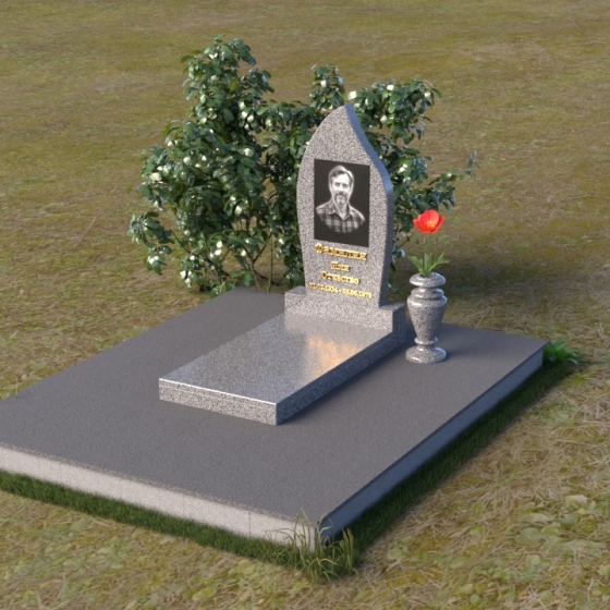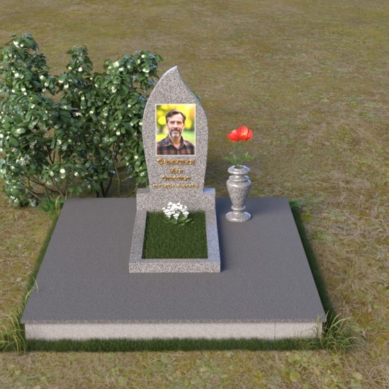Начиная с основания, мы видим строгую прямоугольную форму плиты, обеспечивающую устойчивость всей конструкции. Ее матовая поверхность, контрастируя с глянцем верхней плиты, создает эффект глубины и объема. Горизонтальная плита, словно зеркало, отражает небо и окружающий мир, напоминая о связи земного и небесного. Верхняя часть памятника – самое выразительное и символичное. Ее форма, напоминающая пламя свечи или каплю, застывшую в вечности, символизирует память, скорбь и надежду на вечную жизнь. Грани плавно переходят одна в другую, создавая ощущение мягкости и гармонии. В верхней части нанесено изображение усопшего, выполненное с высокой точностью и детализацией. Ниже располагается надпись с именем и датами жизни, выполненная элегантным шрифтом.